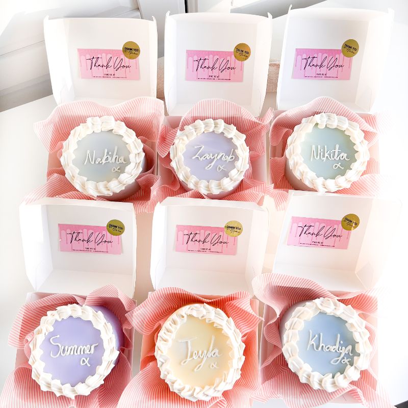 Each Baby Cake aka. lunch box cake, is handmade with love. The cakes are packaged in a little lunch box and finished with a lovely satin bow.