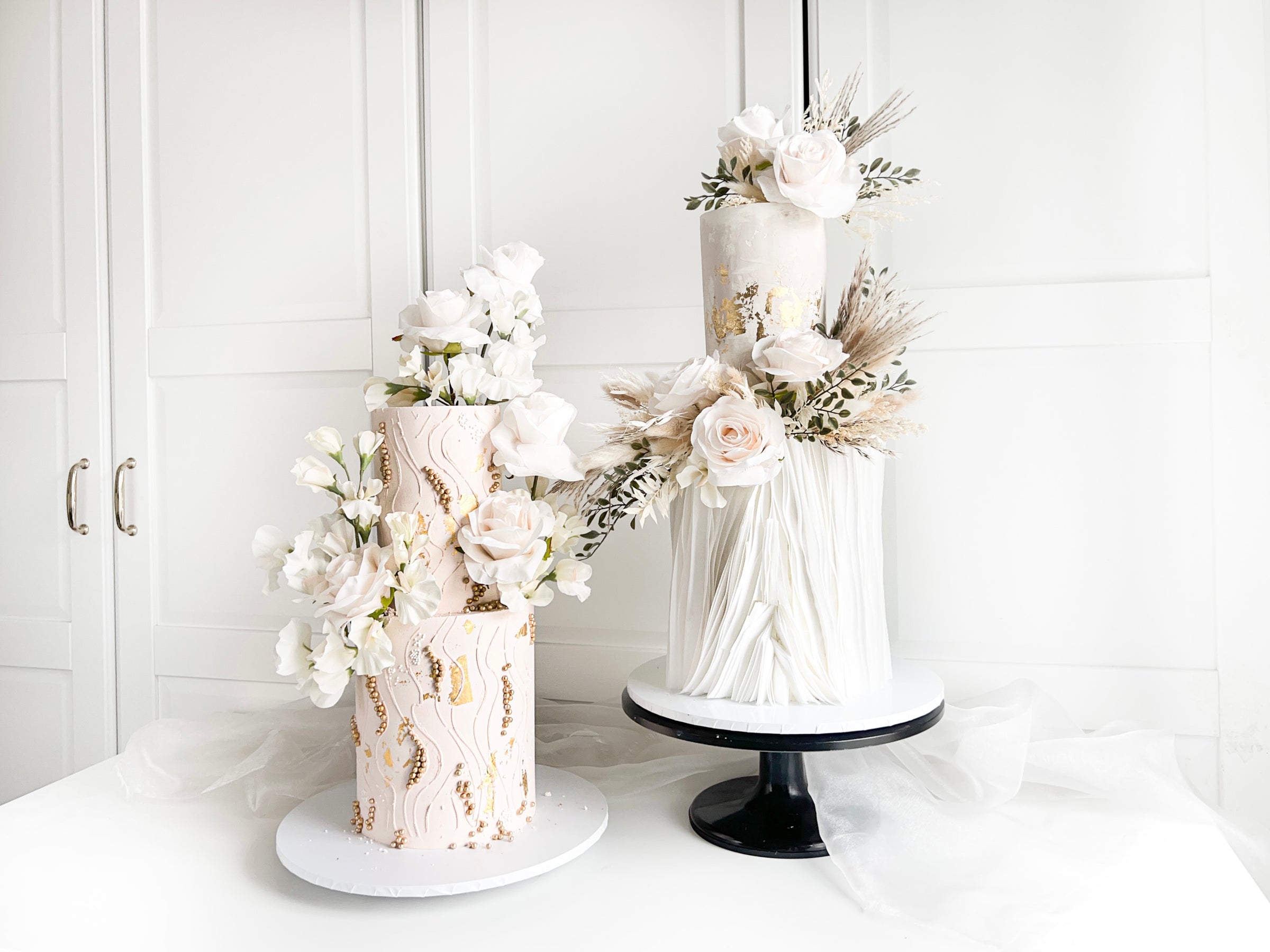 Dress your cake in delicate dried or fresh florals of go bold with colour, artistic textures and intricate details of edible elements.